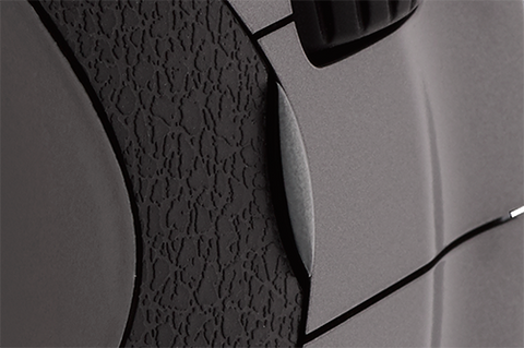 Smartly-placed thumb buttons are both within easy reach at the top and bottom of a contoured thumb rest.